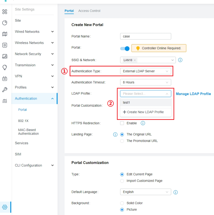 Étape 1. Lancez le contrôleur Omada et accédez à Paramètres > Profils > Profil LDAP . Cliquez sur Créer un nouveau profil LDAP pour configurer un profil LDAP. Trois types de liaison sont disponibles :