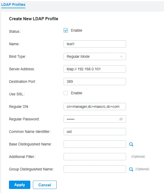 Étape 2. Configurez les paramètres du profil LDAP. Prenons le mode normal comme exemple. Spécifiez les paramètres de votre serveur LDAP :