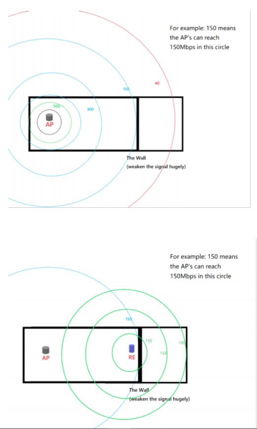Si des obstacles sont inévitables ou si la distance entre le routeur et le répéteur est trop importante pour une connexion sans fil stable, configurez le répéteur en mode point d'accès (AP). Placez le répéteur près de la zone à couvrir, connectez-le au routeur à l'aide d'un câble Ethernet et configurez-le comme point d'accès. Pour plus d'informations, consultez la documentation relative à la configuration d'un répéteur Wi-Fi TP-Link en mode AP .